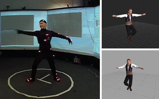 Project Website: http://vidape.cs.ucy.ac.cy The main scientific objective of this innovative project is to combine techniques for motion synthesis and human modelling, which are utilised by the computer animation community, with theories about human motion that are commonly used in dance notation and choreography. A visual platform will be implemented for real-time interaction between a real performer and a virtual character, based on their mutual feedback, to compose a contemporary dance scenario. Alongside the techniques developed in this project, the DanceDB (an open-data Dance motion database) has been created: http://dancedb.cs.ucy.ac.cy